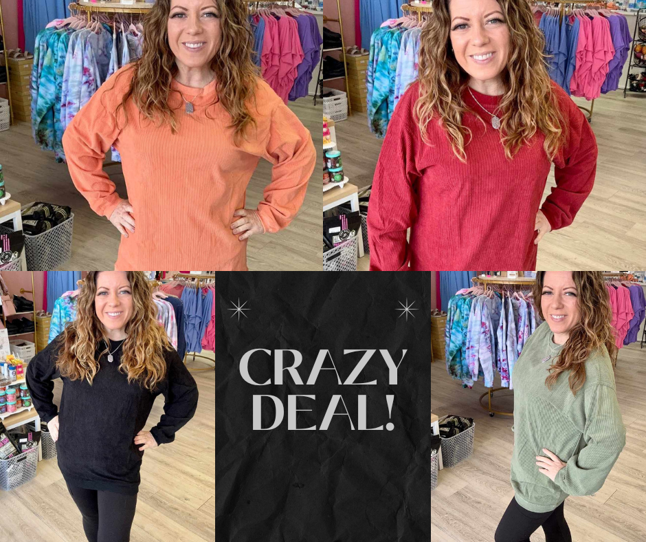 Stay cozy and effortlessly cute in our best-selling Comfy Corded Crewneck! This relaxed-fit pullover is made with ultra-soft corded fabric that feels as good as it looks. With its slightly oversized silhouette and cozy texture, it's perfect for layering or lounging.
